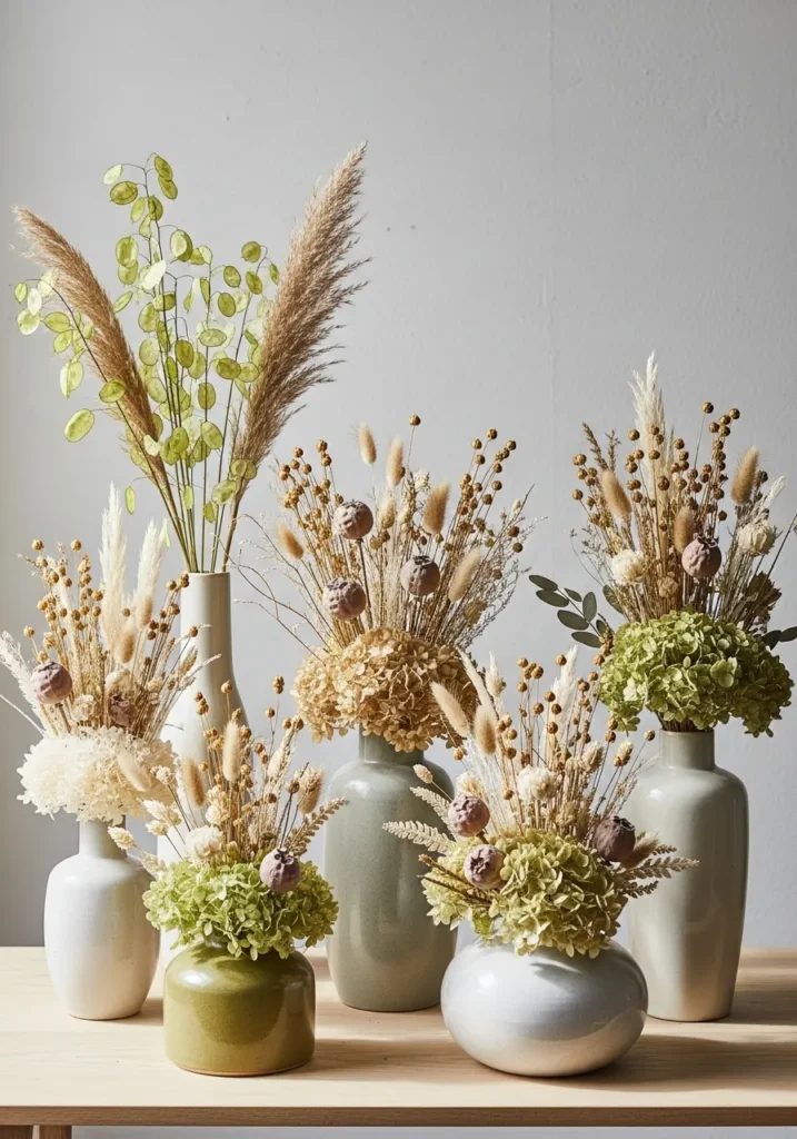 Unlike fresh flowers, dried arrangements offer lasting charm, requiring minimal care while maintaining elegance year-round. Their gentle movement and layered textures soften rigid lines in modern furniture and bring a tactile warmth to any space.