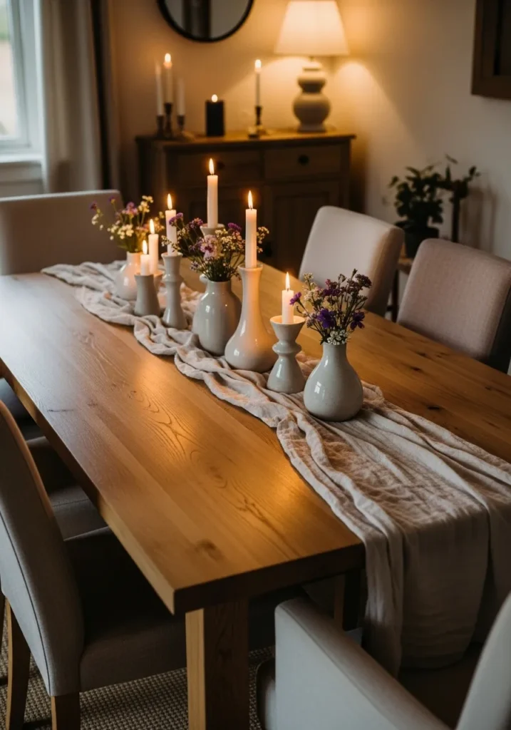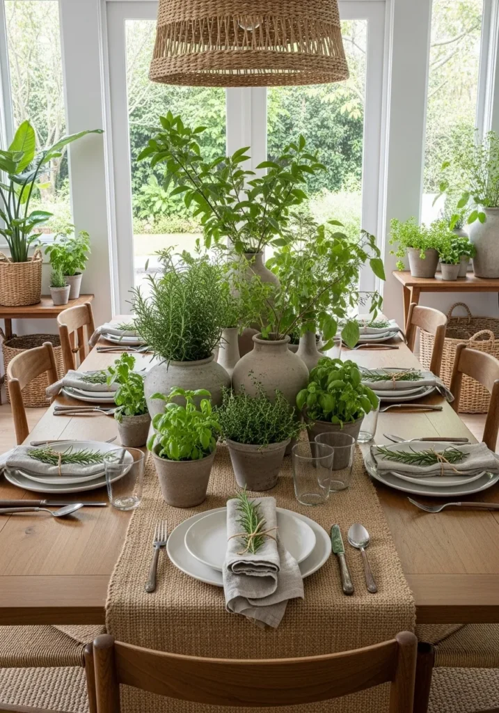 Enhance the sensory experience by incorporating fresh herbs like rosemary, basil, or thyme in small clay pots. Not only do they infuse the air with a subtle, refreshing fragrance, but they also double as living centerpieces that guests can admire or even use during the meal. Layer natural wood tones and muted textiles to keep the palette grounded and soothing.