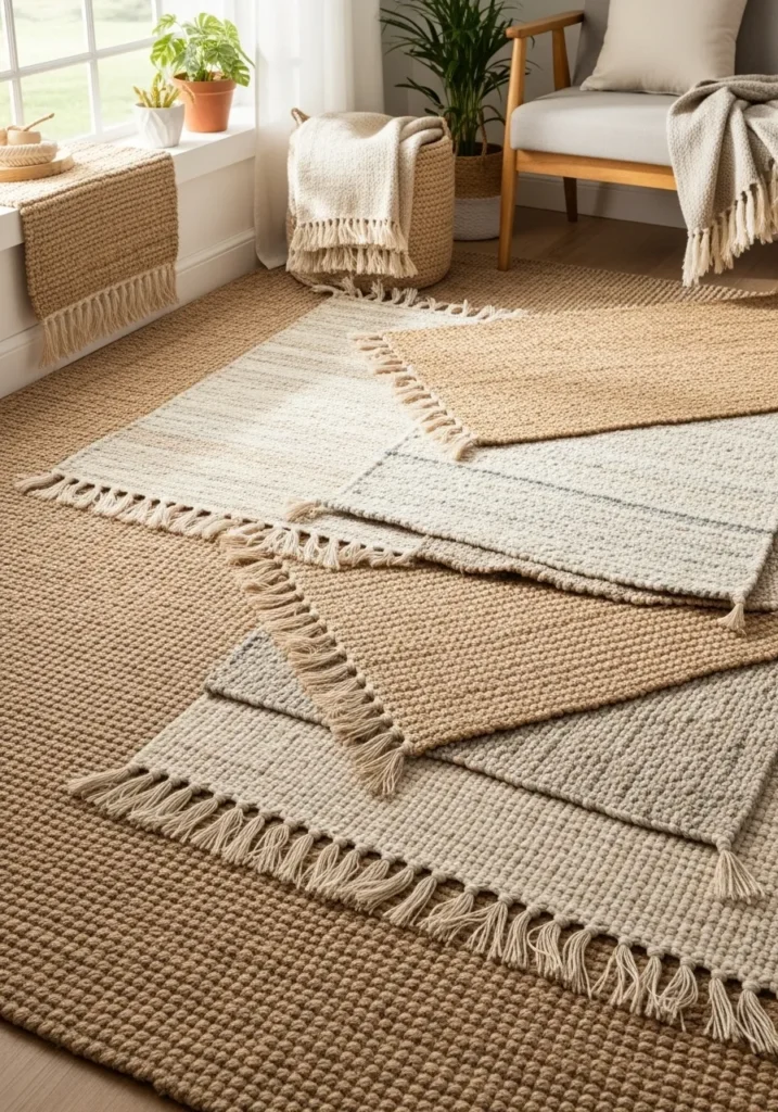 For layered sophistication, place smaller rugs atop larger ones to build depth and visual interest. Stick to muted, natural hues—sand, oatmeal, or soft gray—to ensure harmony with surrounding furniture and décor. The combination of texture and tone elevates comfort while remaining understated and elegant.
