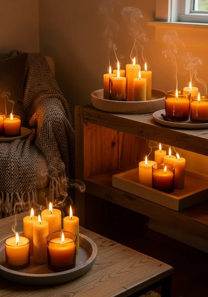 Candlelight has a timeless way of transforming any space into a sanctuary of warmth and tranquility. Using amber-toned glass holders and beeswax candles creates a golden, organic glow that flatters natural materials like wood, linen, and stone. The flicker of each flame dances softly across textures, bringing life and movement to even the quietest corners of a room.