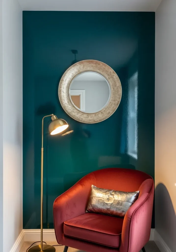 When finished in a high-gloss or satin sheen, the wall reflects light beautifully, adding subtle movement and dimension. The glossy surface enhances the color’s intensity, amplifying the luxurious ambiance while creating a polished, modern effect. Whether paired with classic architecture or contemporary furnishings, jewel-toned walls bring visual depth and artistic flair to the room’s overall design.