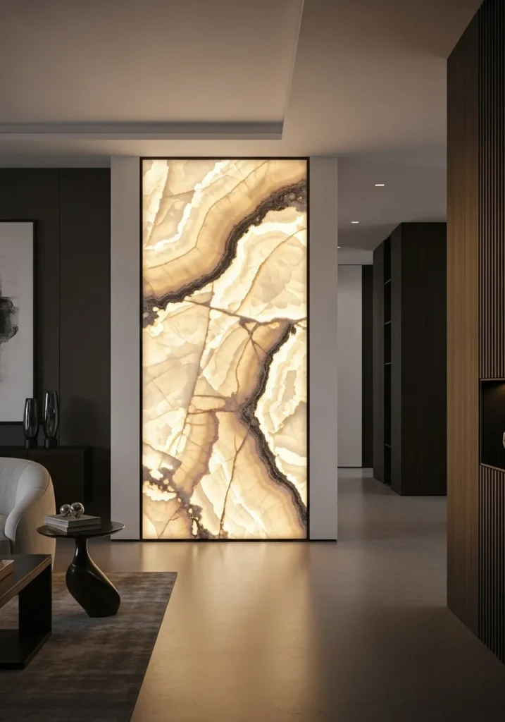 For balance, pair the backlit panel with minimalist décor and neutral materials—like leather, wood, or matte metals. This allows the stone’s natural glow to remain the centerpiece while maintaining a refined, contemporary aesthetic that radiates understated opulence.