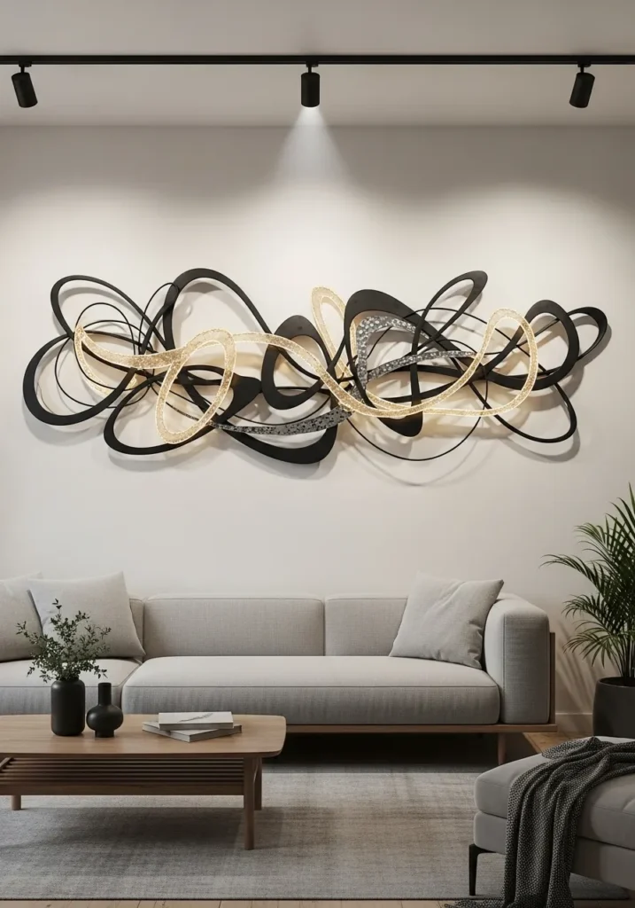 Complement these artful light installations with minimalist furniture and neutral walls to keep focus on the craftsmanship and radiance. The result is a living room that feels curated, modern, and luxuriously luminous—a perfect fusion of art, architecture, and ambiance.