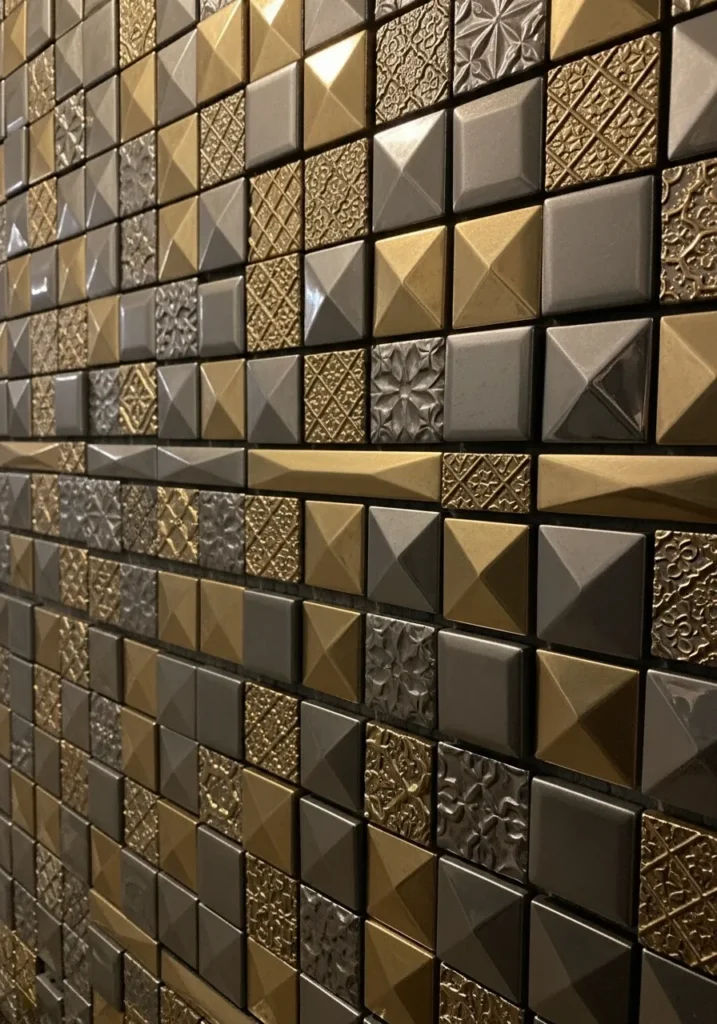 To balance the glamour of metallic tones, pair the wall with neutral furnishings—think ivory sofas, matte finishes, or natural wood elements. This combination keeps the space refined rather than ostentatious, highlighting sophistication through contrast and restraint. A metallic tile wall embodies modern luxury at its finest: bold, radiant, and timelessly elegant.